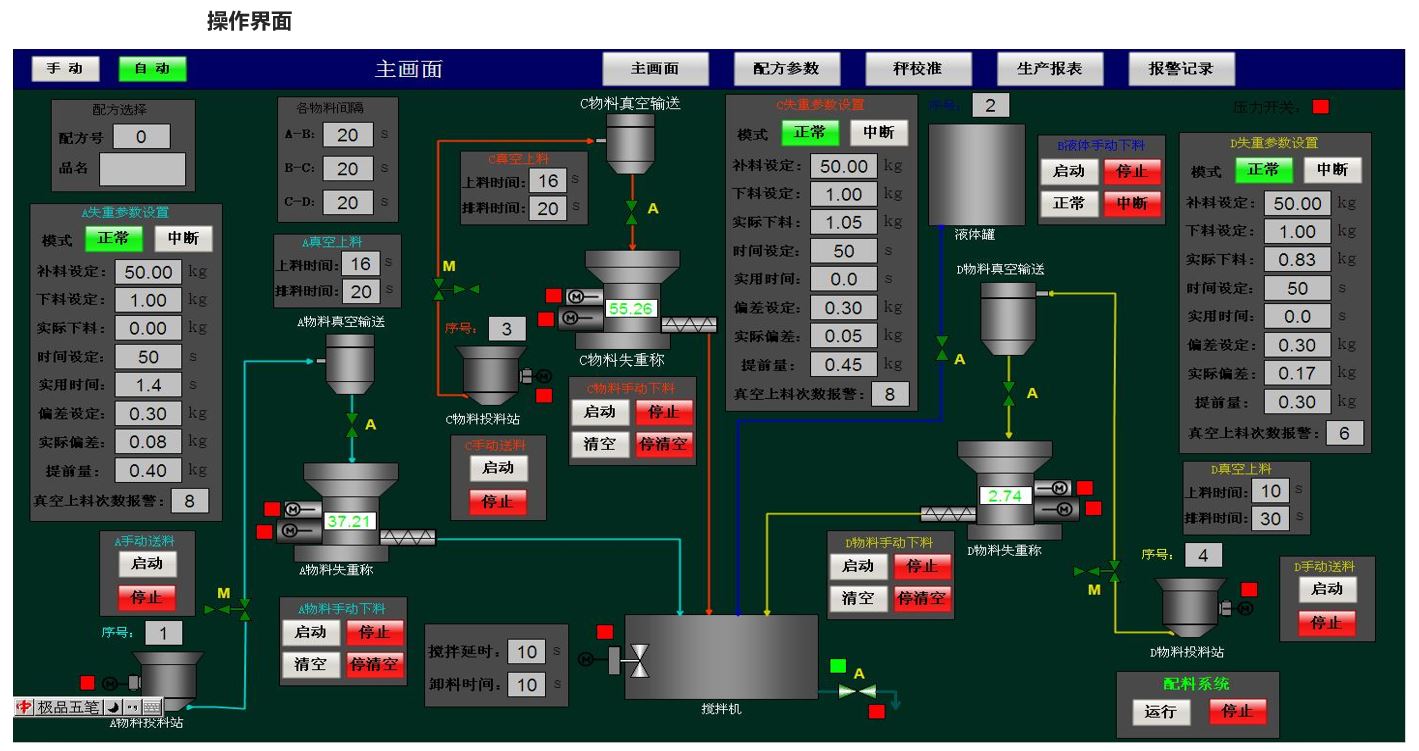 小料配料系統一般指物料種類大于等于四種,累計配料量小于30kg,配料精度要求相對較高的配料應用。